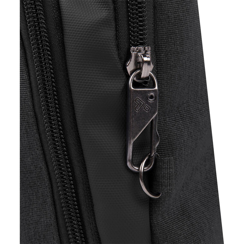- Full Anti-Theft features include surround slash-resistant body panels and shoulder strap; locking compartments; lockdown strap