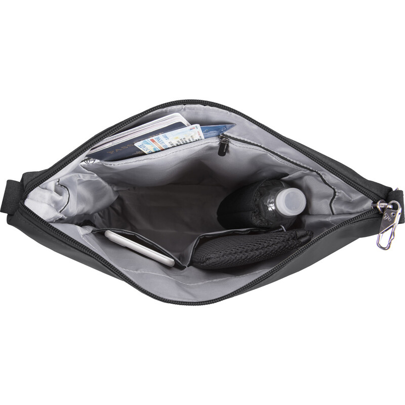 - Spacious main compartment with zipper clip locking feature and internal RFID blocking zip pocket