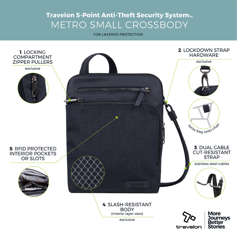Main features of the Travelon Metro Anti-Theft Small Crossbody bag include: