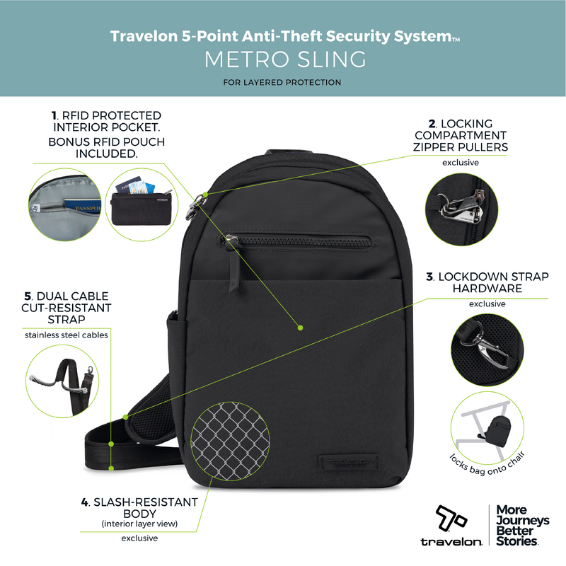 Main features of the Travelon Metro Anti-Theft Tablet Sling Bag include: