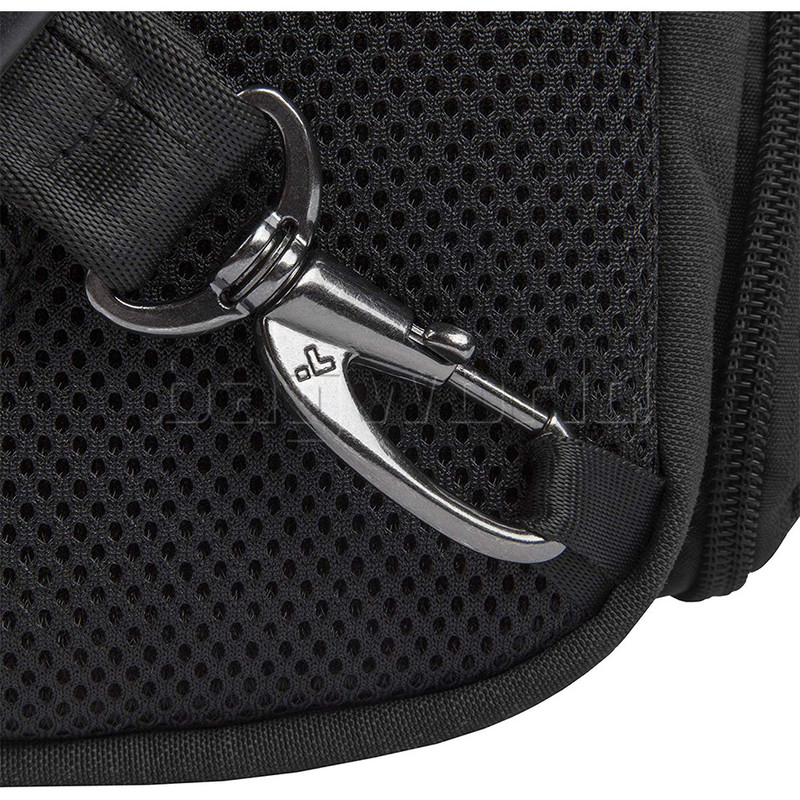 - Full Anti-Theft features include surround slash-resistant body panels and shoulder strap; locking compartments; lockdown strap