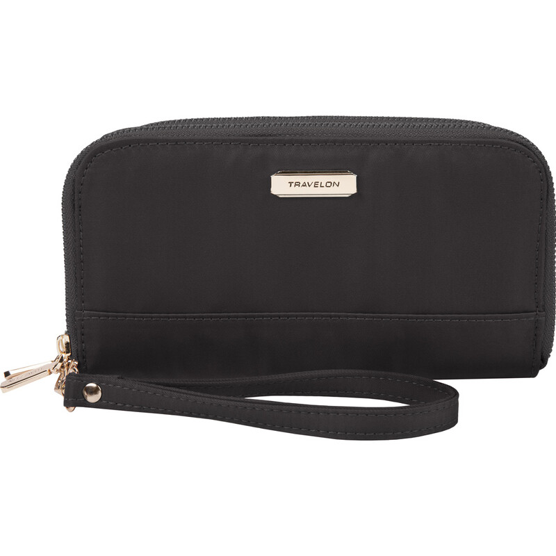 Travelon RFID Blocking Double Zip Clutch Wallet Black 43399