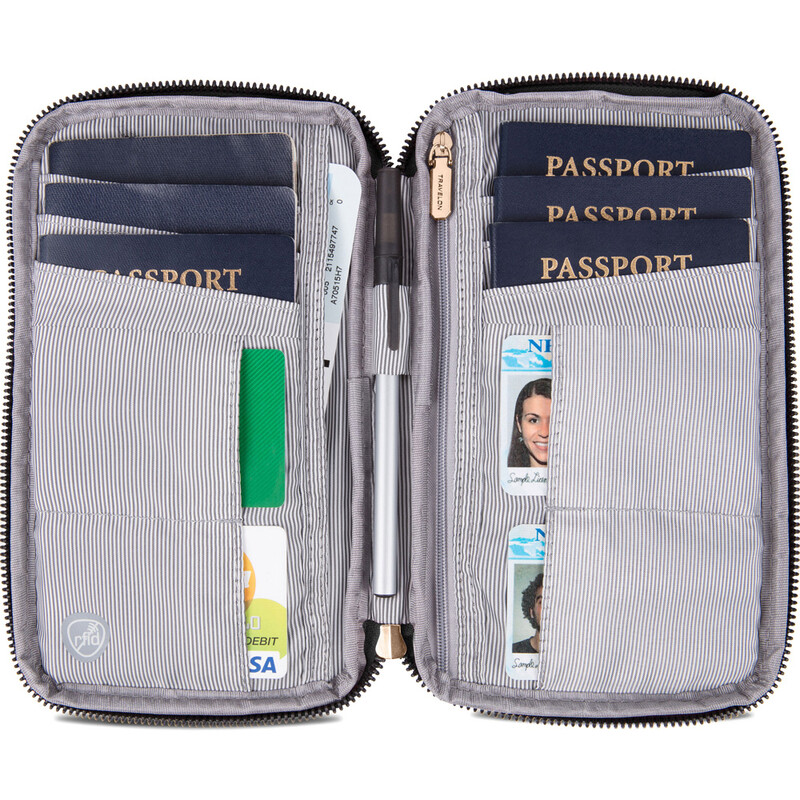 Main features of the Travelon RFID Blocking Family Passport Wallet include: