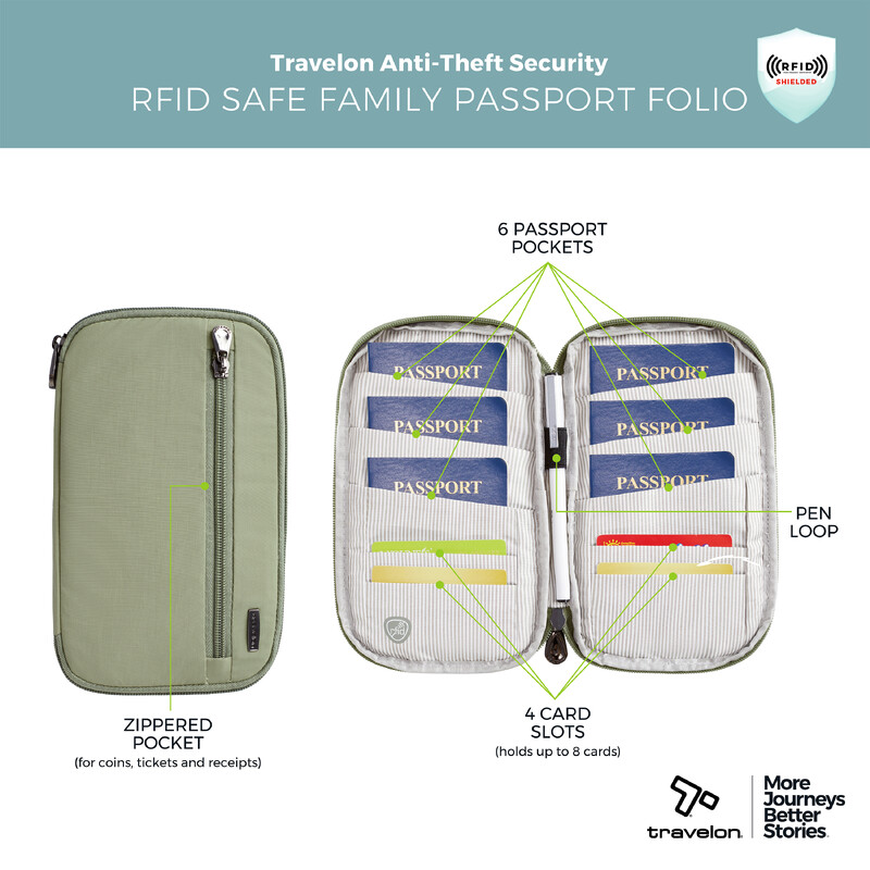 Travelon RFID Blocking Family Passport Wallet Moss 43705 - ORDER NOW FOR DELIVERY IN MAY 2026