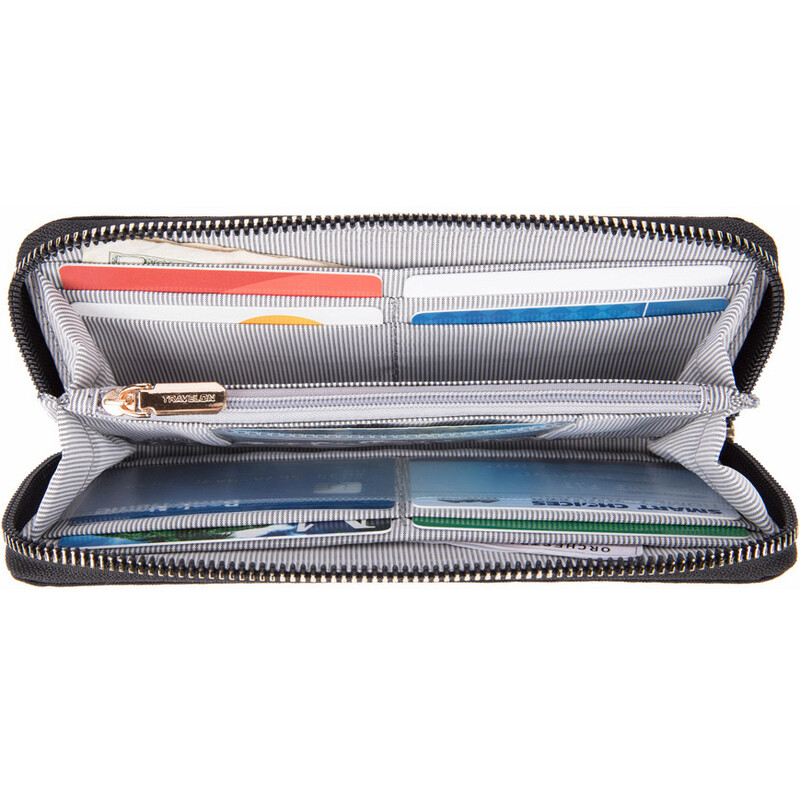 Main features of the Travelon RFID Blocking Single Zip Wallet include: