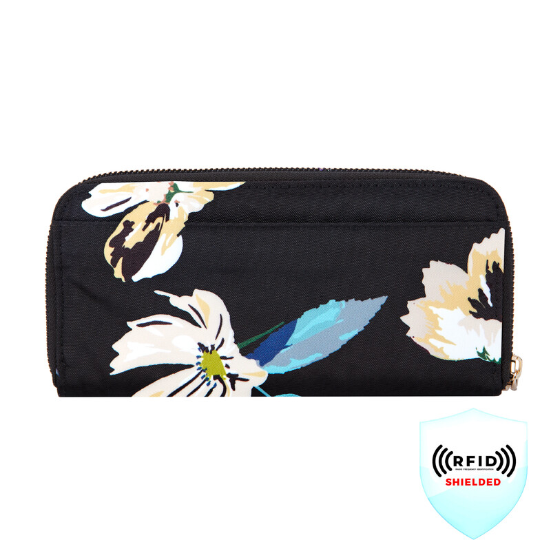 Travelon RFID Blocking Single Zip Wallet Midnight Floral 43398