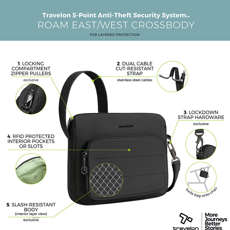 Main features of the Travelon Roam Anti-Theft East/West Crossbody include: