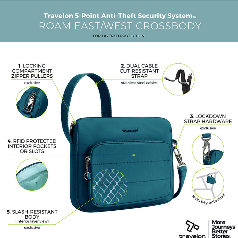 Main features of the Travelon Roam Anti-Theft East/West Crossbody include: