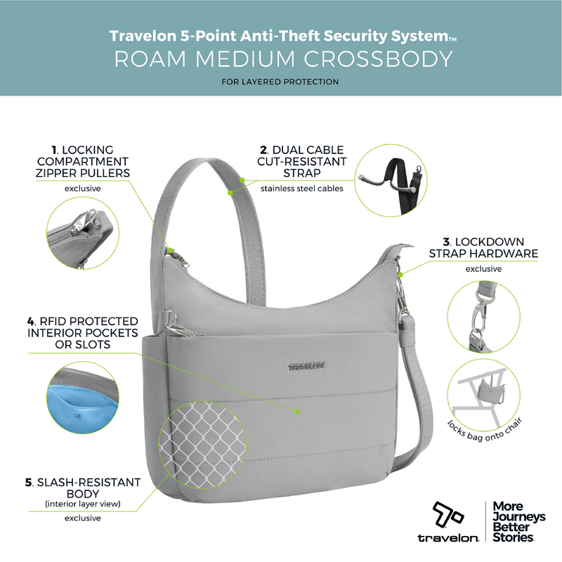 Main features of the Travelon Roam Anti-Theft Medium Crossbody include: