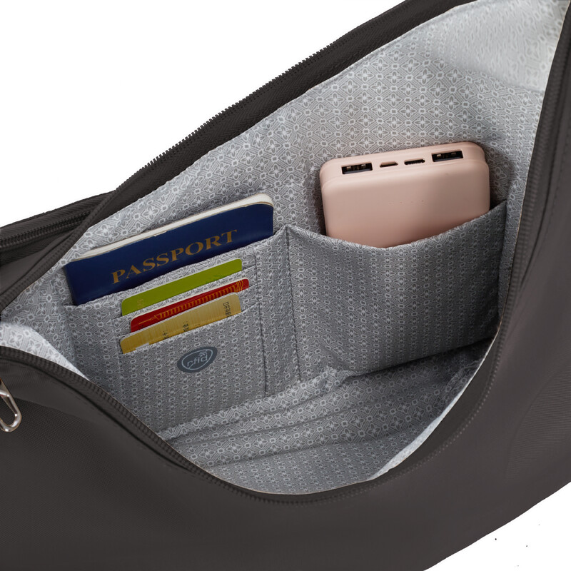 Travelon Runways Anti-Theft Asymmetric Hobo Bag Smoke 43716 - ORDER NOW FOR DELIVERY IN MAY 2026