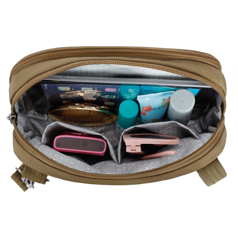 Travelon Runways Anti-Theft Double Compartment Tablet Crossbody Latte 43714 - ORDER NOW FOR DELIVERY IN MAY 2026