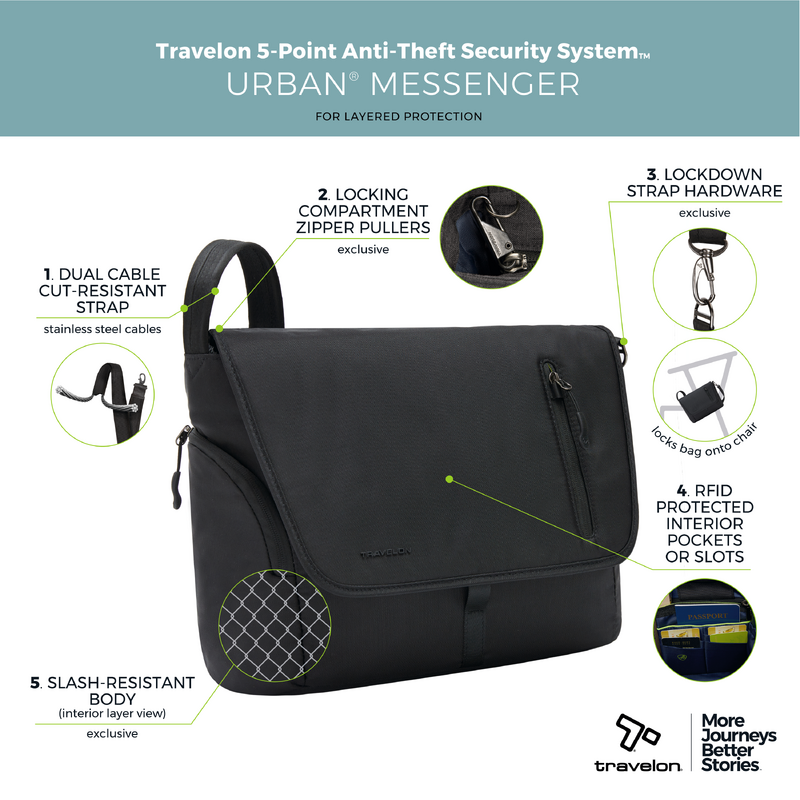 Main features of the Travelon Urban Anti-Theft 14" Laptop & Tablet Messenger include:
