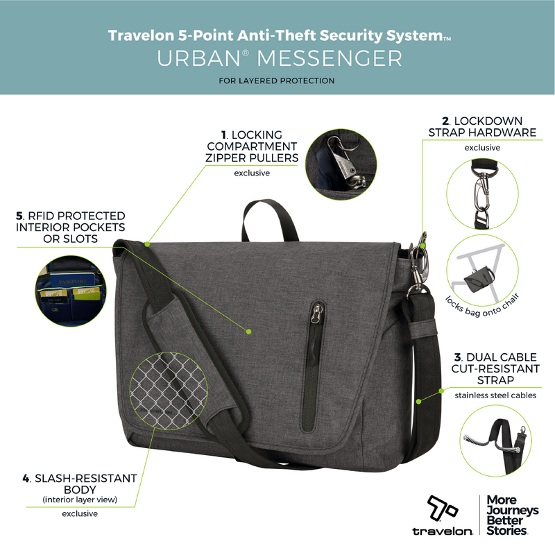 Main features of the Travelon Urban Anti-Theft 14" Laptop & Tablet Messenger include: