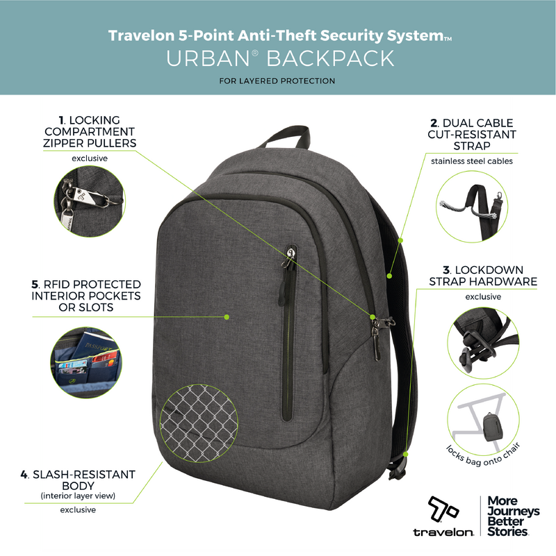 Main features of the Travelon Urban Anti-Theft 15.6" Laptop & Tablet Backpack include: