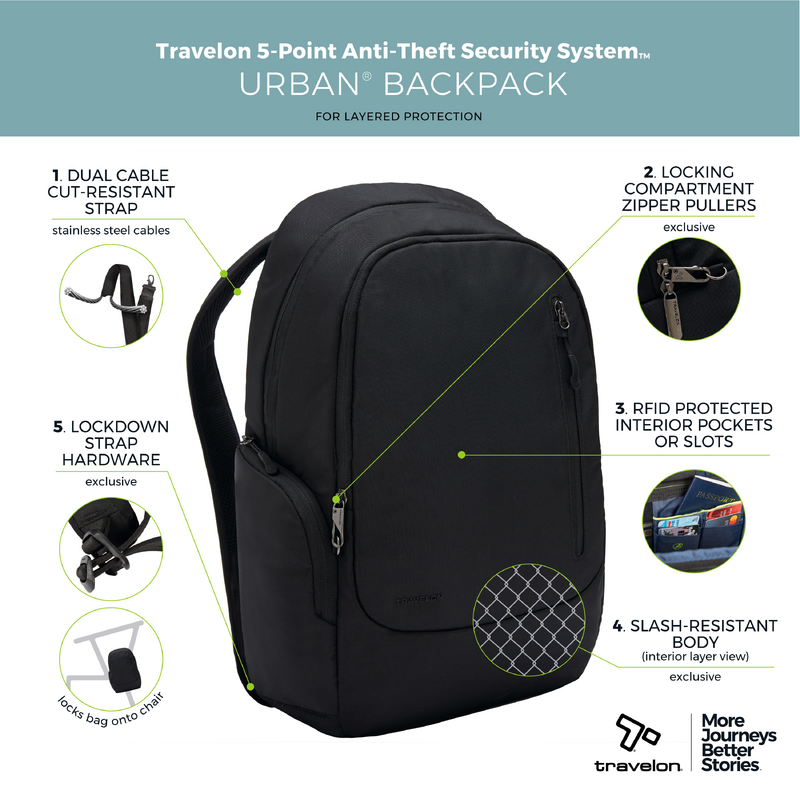 Main features of the Travelon Urban Anti-Theft 15.6" Laptop & Tablet Backpack include: