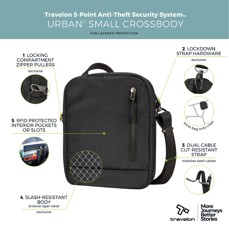 Main features of the Travelon Urban Anti-Theft Small Corssbody Bag include: