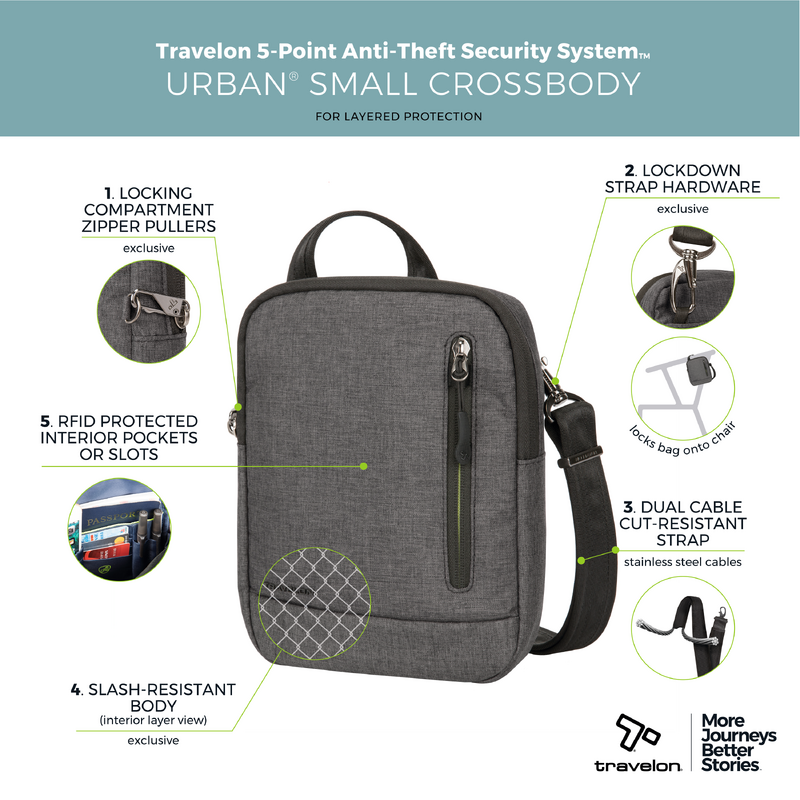 Main features of the Travelon Urban Anti-Theft Small Crossbody Bag include: