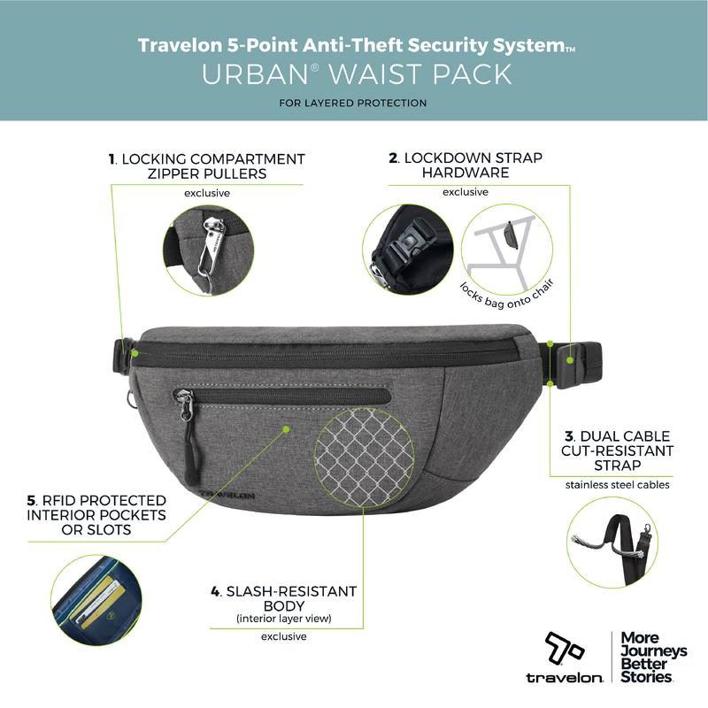 Main features of the Travelon Urban Anti-Theft Waist Pack include: